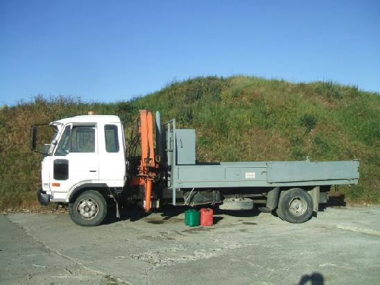4X2 DROP SIDE TIP TRUCK COMPLETE WITH HIAB 550 FITTED. DECK 4.5m LONG, 2.25m WIDE, 0.35m HIGH, WITH DOUBLE SWING TAIL DOOR. CRANE WILL LIFT 500kg @ 7.1m.
