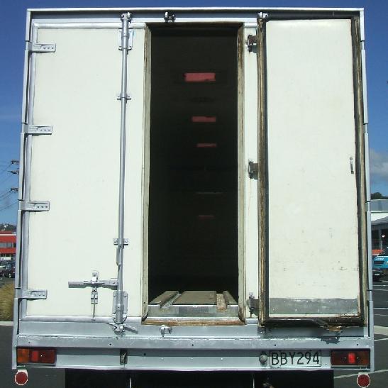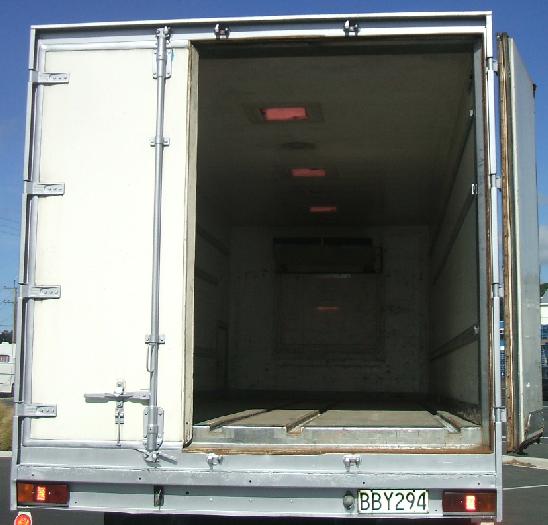 Stand alone body with own power, Diesel engine 12 volt, Body L 6.2m x W 2.3m x H 2.0m, Small door left side, Three rear doors, Carrier Mistral 500 chiller unit, 0 degrease,